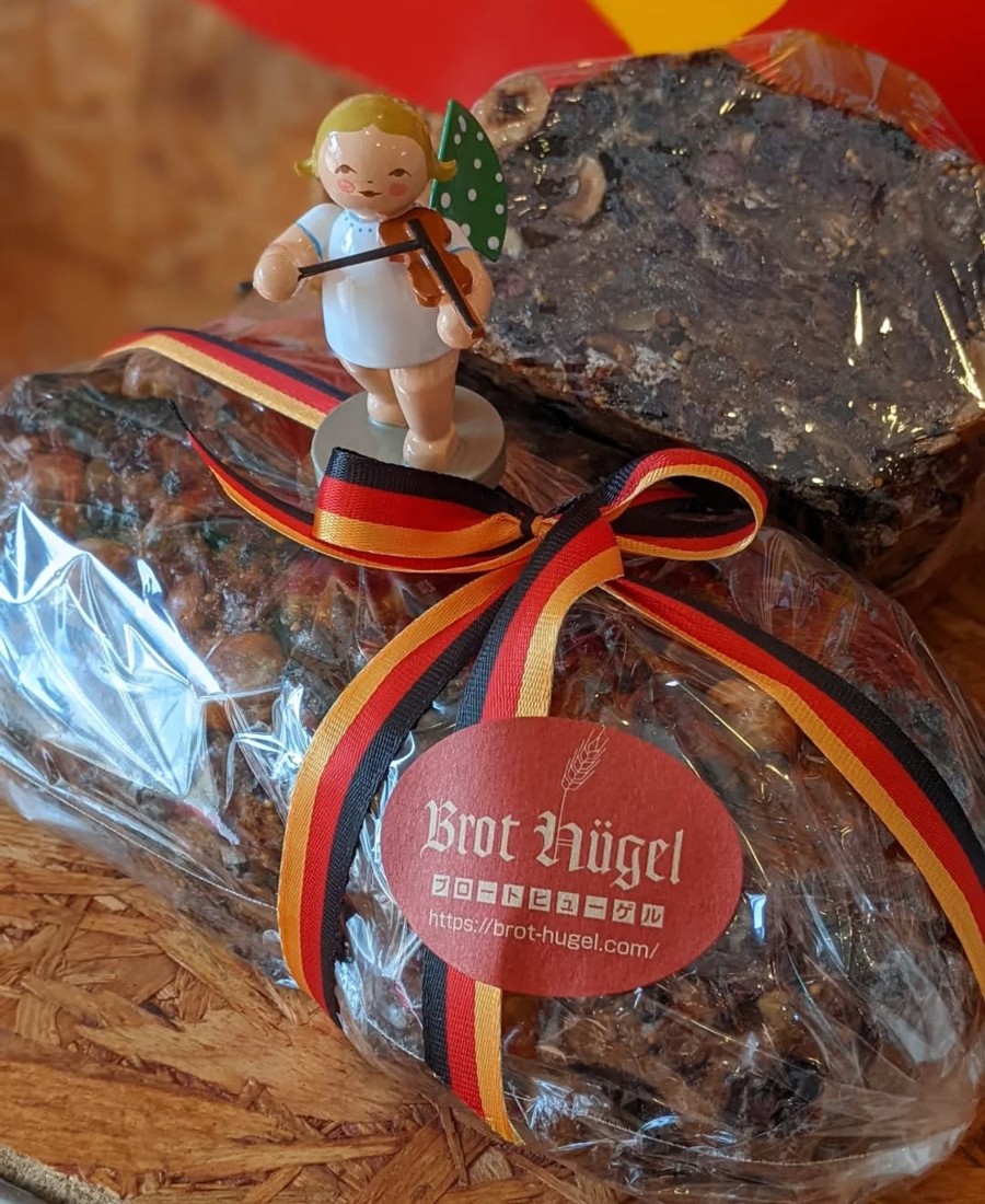 ドライフルーツとナッツがずっしりと詰まり、クリスマス・シュトレンよりもさらにフィルングの割合が多くなっています。
