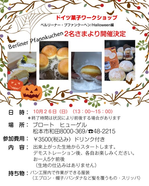 10月26日(日)ヒューゲルではハロウィンに向けたドイツ菓子ワークショップを開催します。
